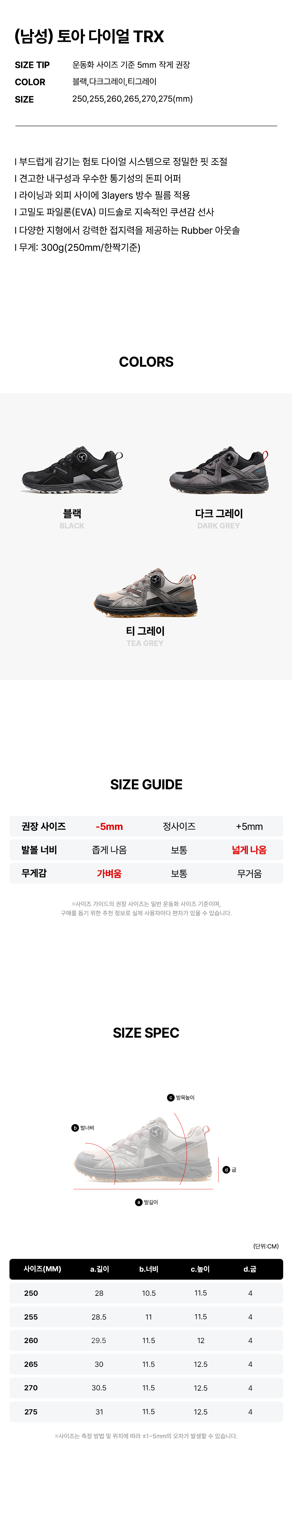 | *Weight: 300g ❘ Based on one shoe, size 250mm | (Unit: cm) |