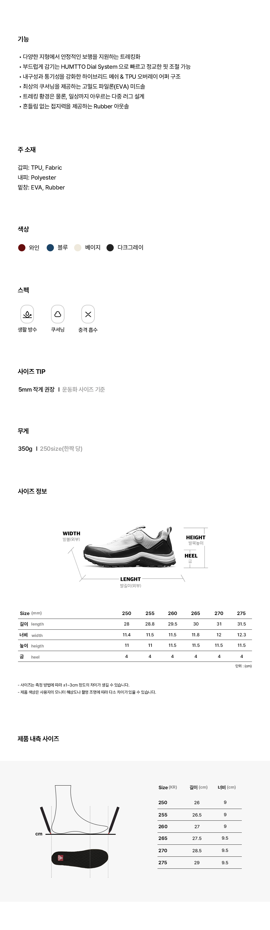 | *Weight 350g ❘ Based on one shoe (250mm) | (Unit: cm) |