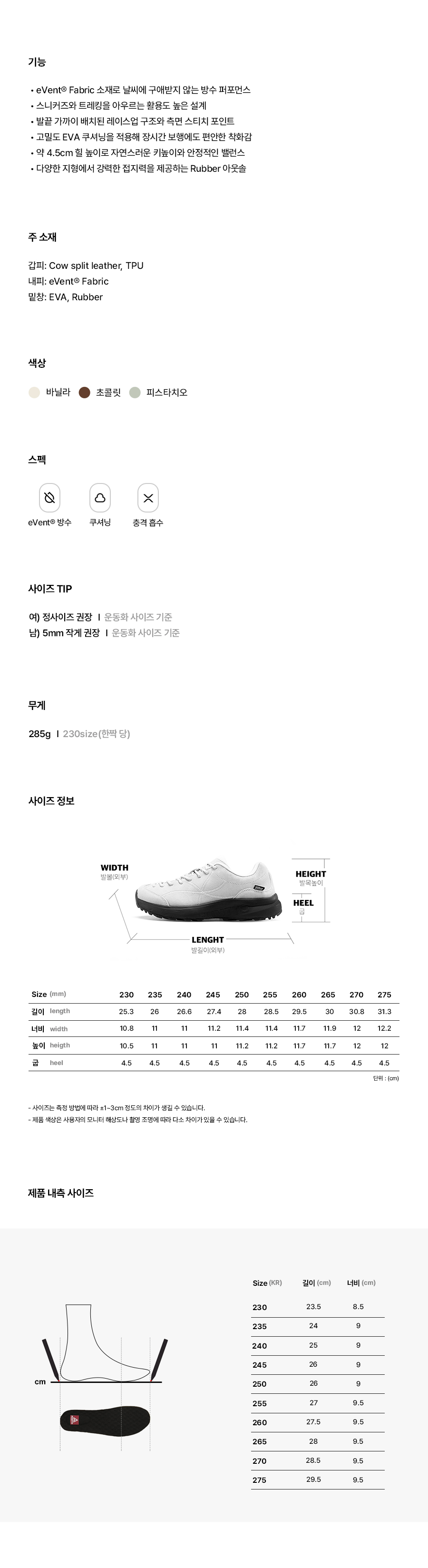 | *Weight 285g ❘ Based on one shoe in size 230mm | (Unit: cm) |