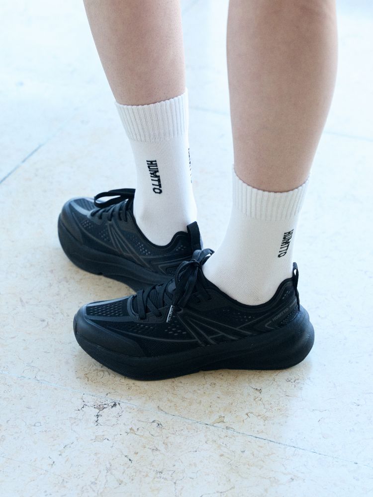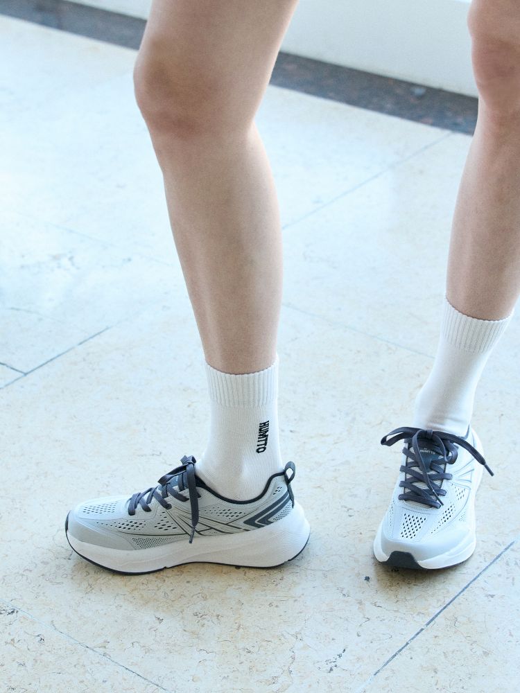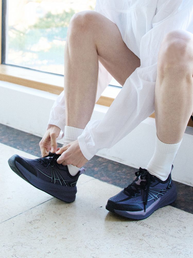 A soft binding collar that gently wraps the ankle, combined with a wide forefoot design, ensures comfort even during prolonged wear.
