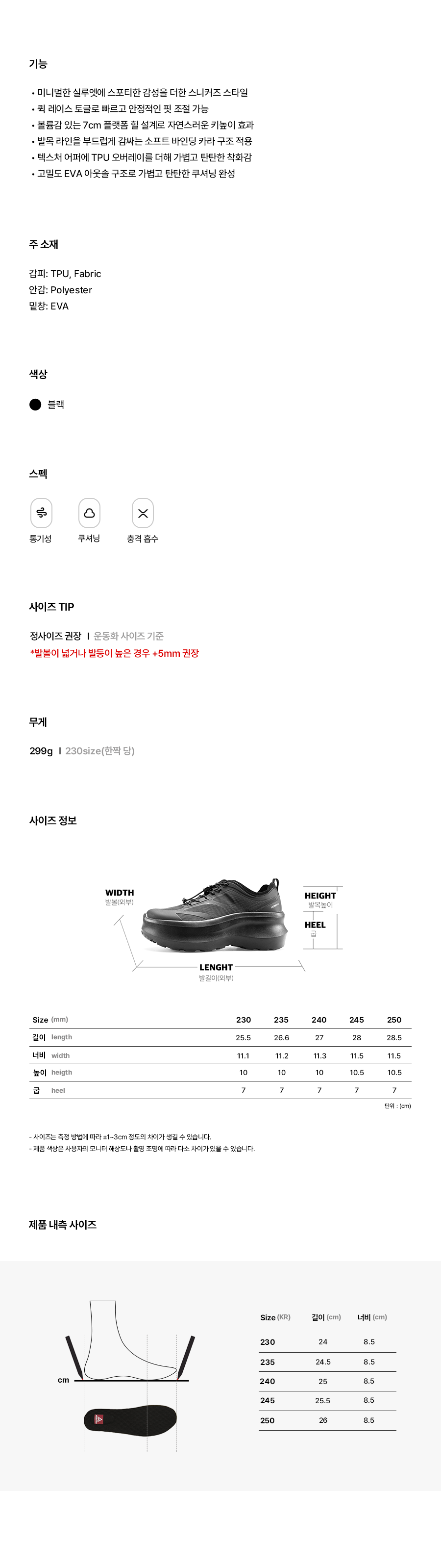 | *Weight: 299g ❘ Based on one shoe, size 230mm | (Unit: cm) |