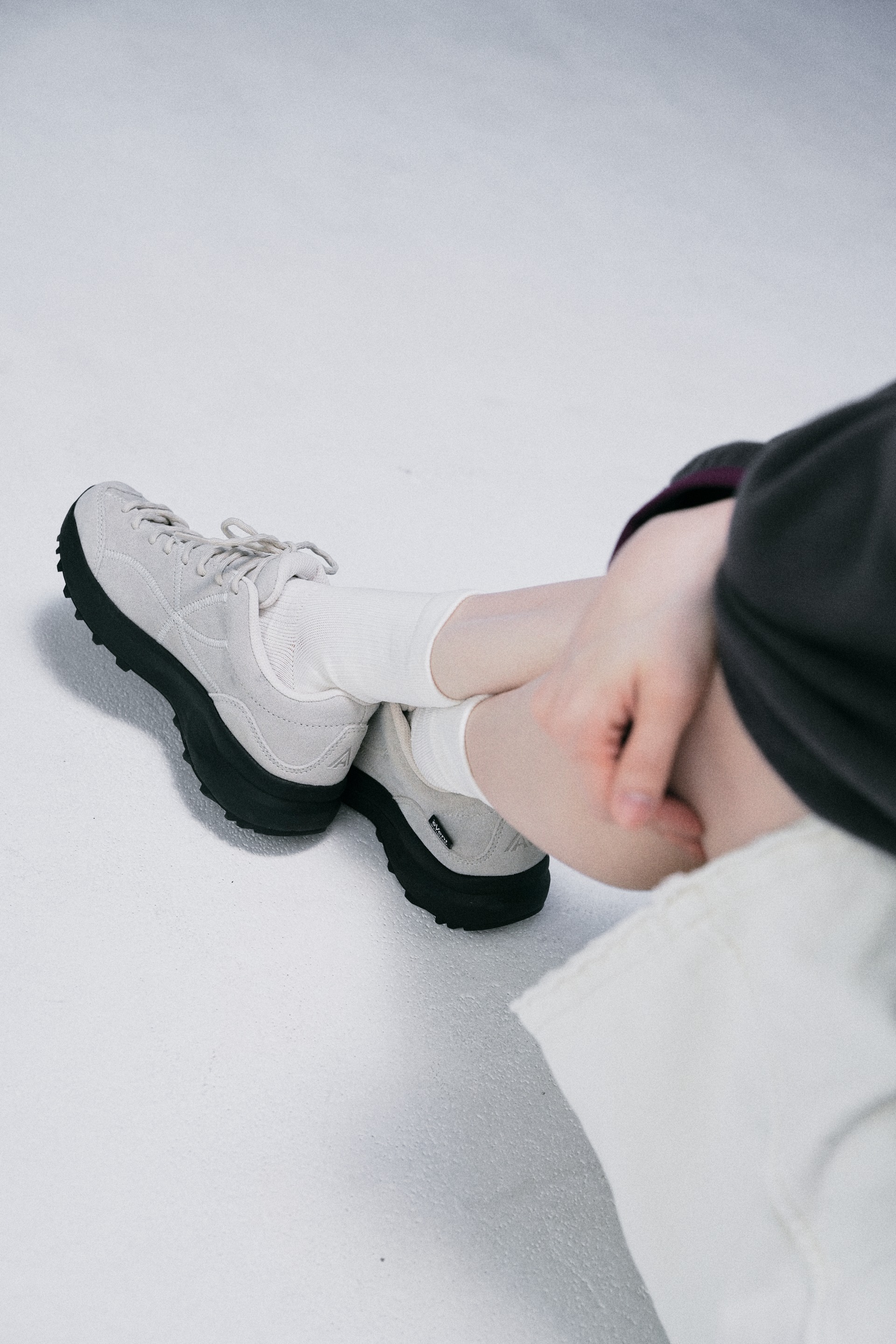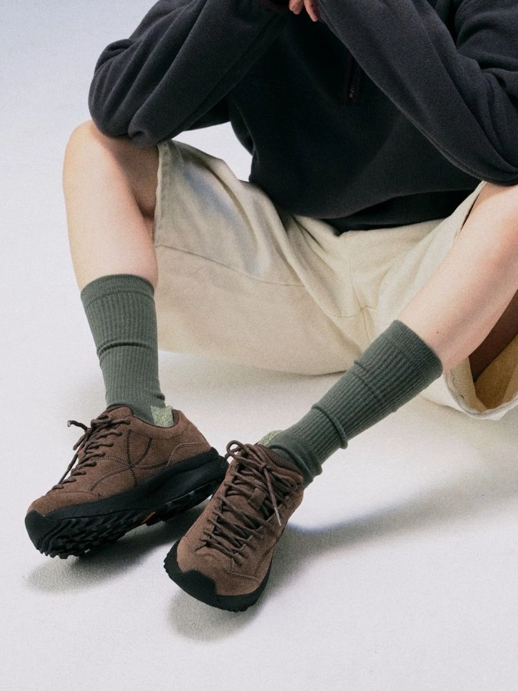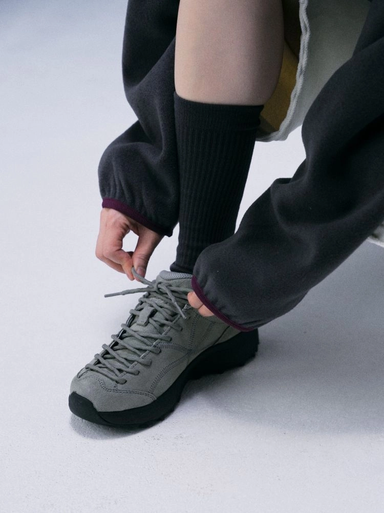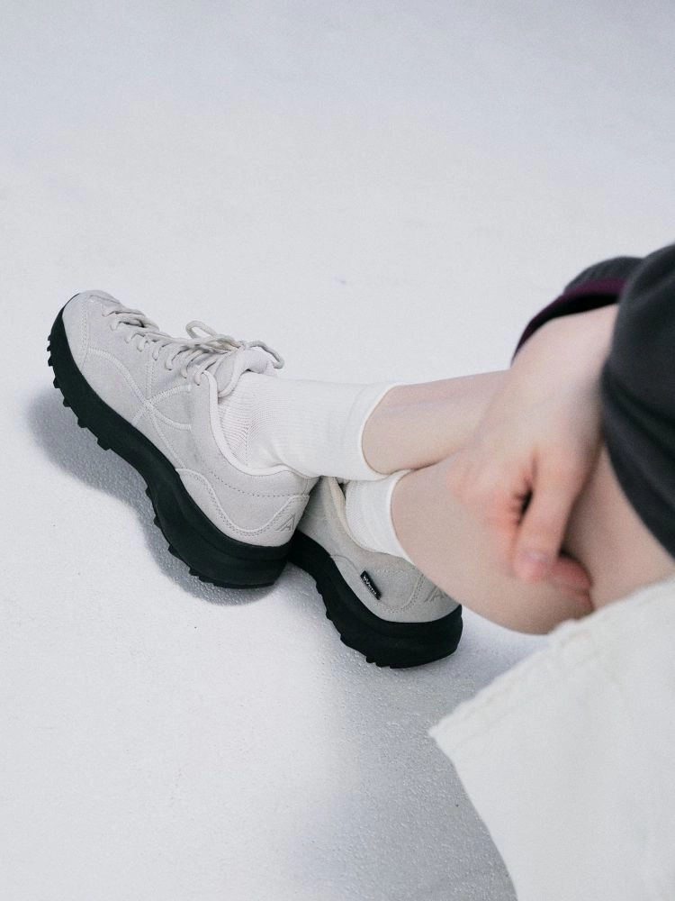 The forward-set lace-up structure wraps the foot securely, refining the overall silhouette,